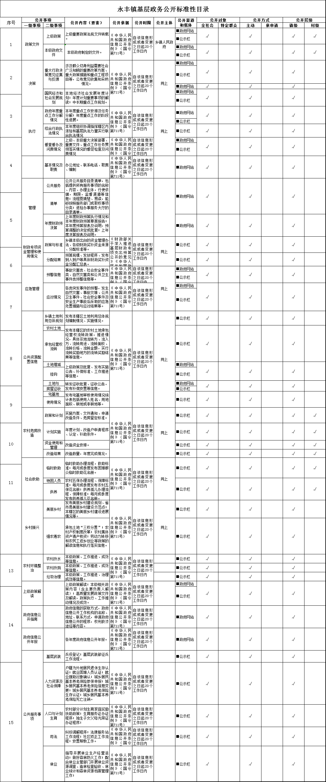 永豐鎮基層政務公開標準性目錄