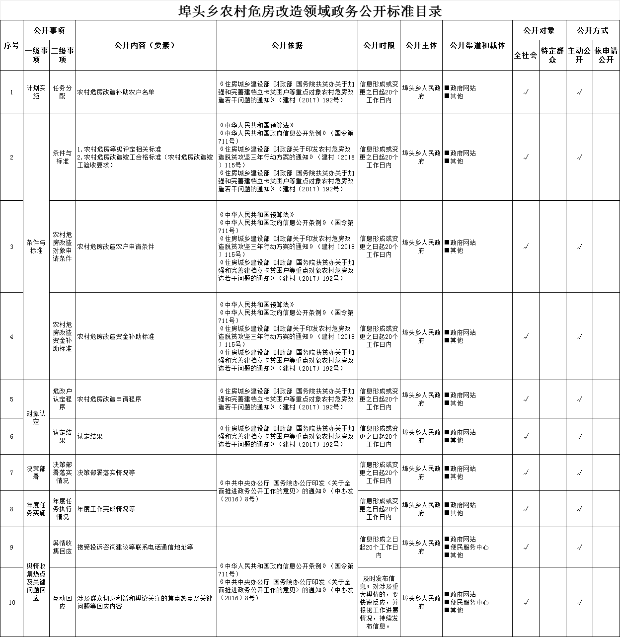 埠頭鄉農村危房改造領域政務公開標準目錄