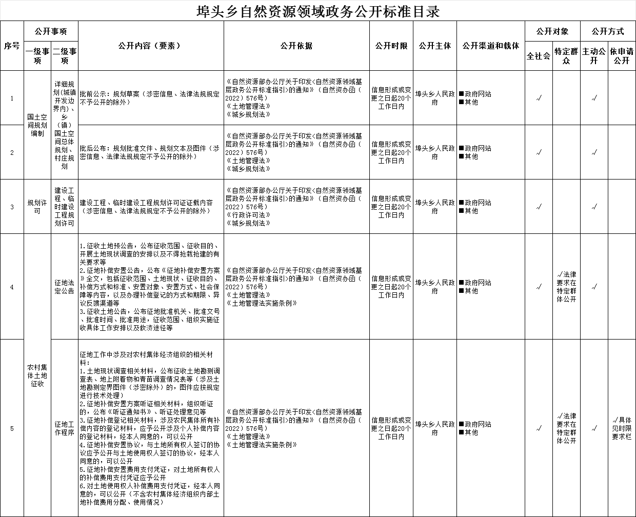 埠頭鄉自然資源領域政務公開標準目錄
