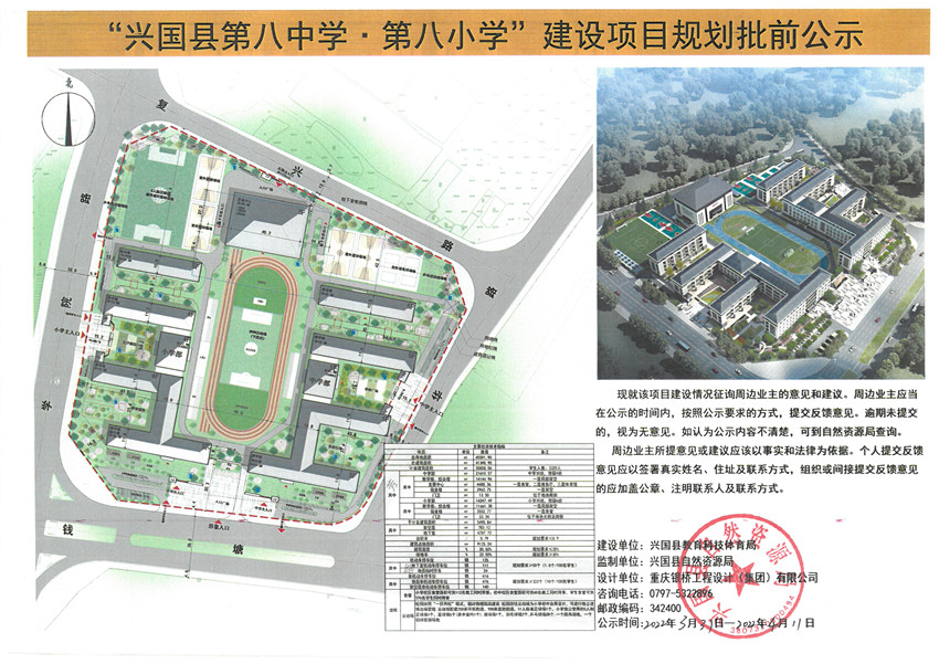 壩南新區的興縣第八中學·第八小學項目建設項目批前規劃公示