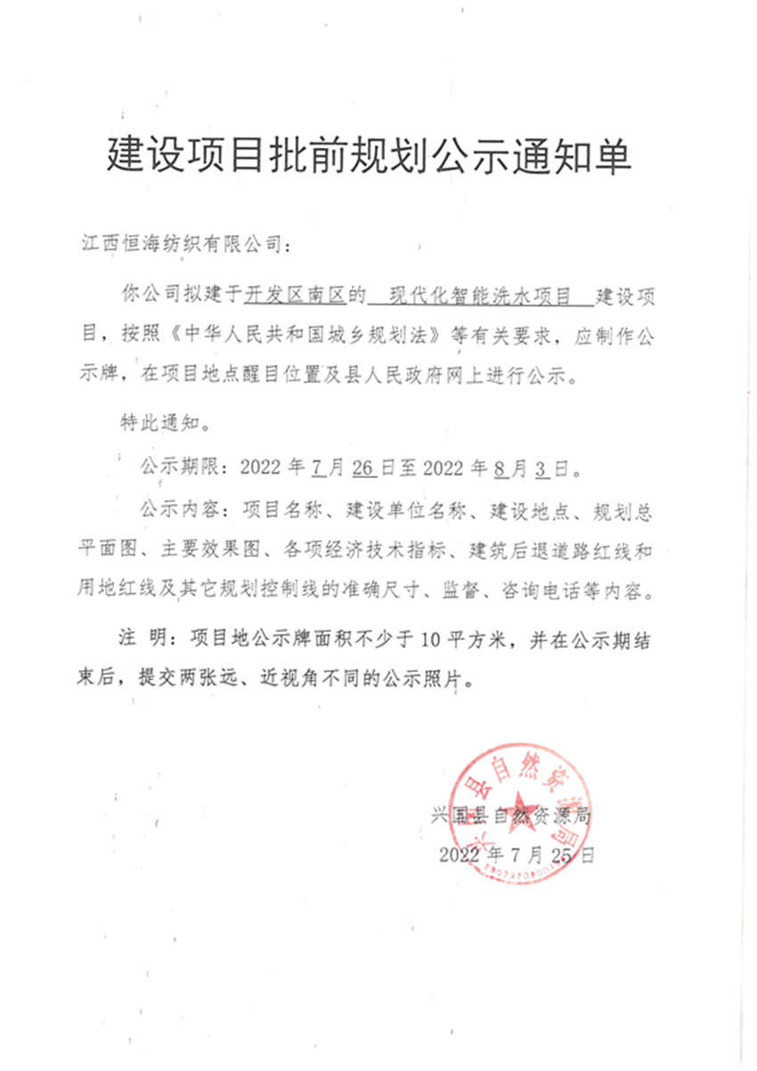 開發(fā)區(qū)南區(qū)的現(xiàn)代化智能洗水項目建設(shè)項目批前規(guī)劃公示