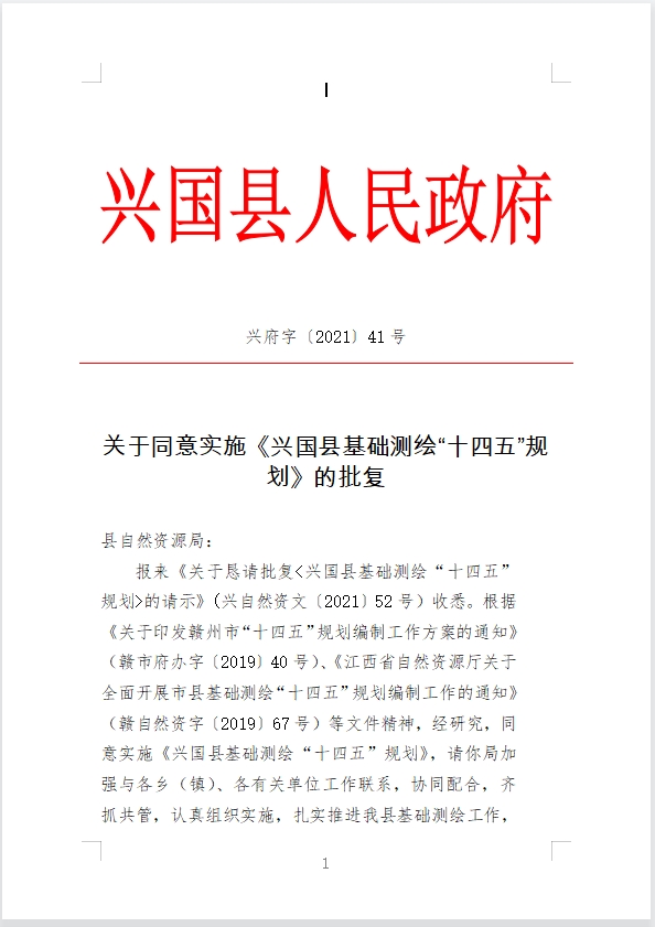 關于同意實施《興國縣基礎測繪“十四五”規劃》的批復