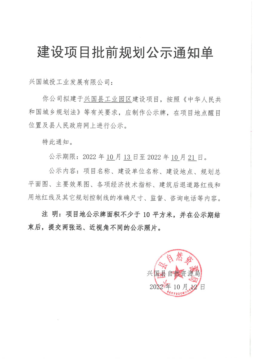 “興國縣標準廠房擴建項目(一期)”建設項目規劃批前公示