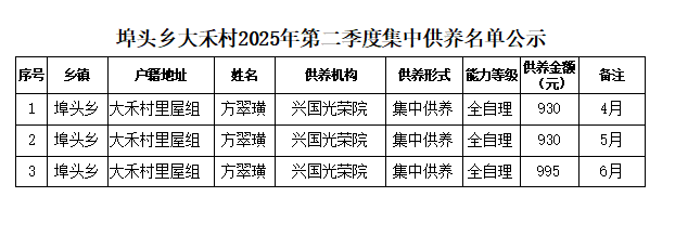 【養(yǎng)老服務(wù)】大禾村2025年第二季度集中供養(yǎng)名單公示