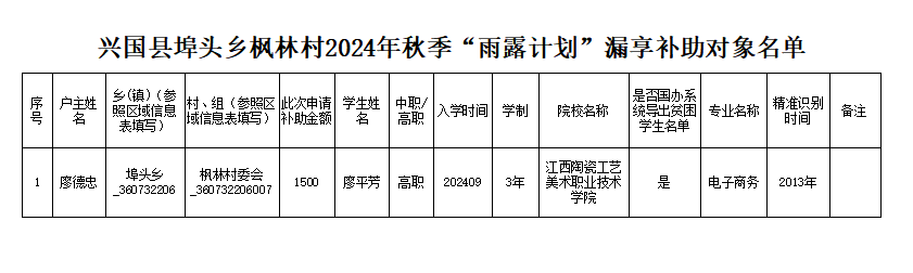 【鄉(xiāng)村振興】楓林村2024年秋季“雨露計(jì)劃”漏享補(bǔ)助對(duì)象名單