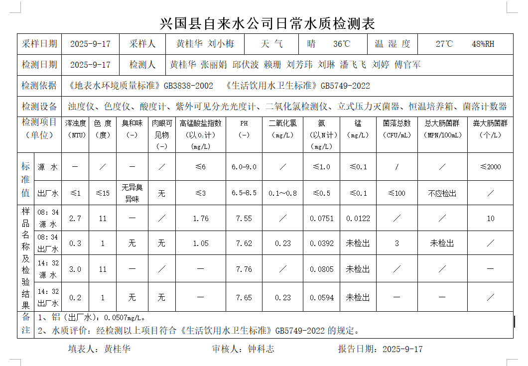 水質(zhì)常規(guī)檢測臺賬(2025年9月17日)