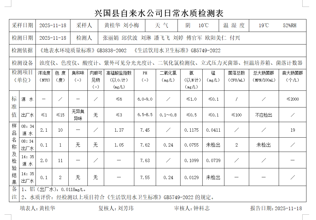 水質常規檢測臺賬(2025年11月18日)