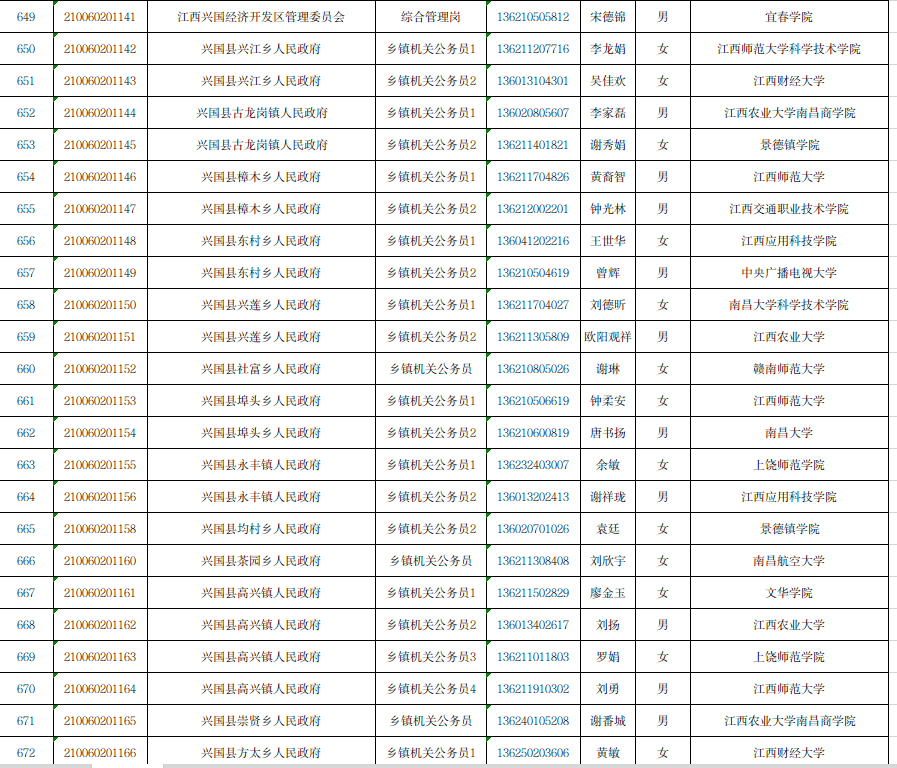 根據《江西省2024年度考試錄用公務員公告》有關規定,經筆試、面試、體檢(體測)、考察等程序,確定羅澤霖等1405人為贛州市2024年度考試錄用公務員第一批擬錄用人員(具體名單見附件),現予以公示。