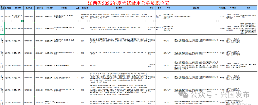 附件1:興國縣2026年度考試錄用公務員職位表
