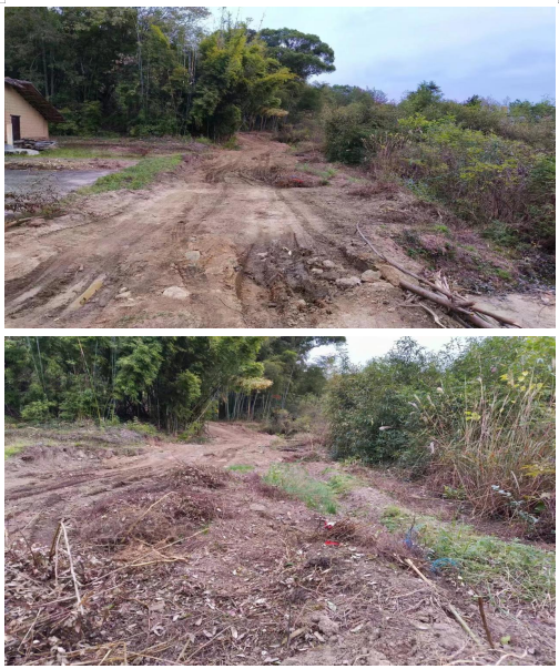 經現場調查,您反映的修路人員為負責實施我鎮松材線蟲病疫木除治的隊伍,修路的主要目的是為了方便山上作業,占用的土地屬江背村河坳組劉桃秀家所有,共三塊菜地約50平米,雙方已協商一致,由疫木隊治隊向劉桃秀家補償1500元(微信轉賬方式轉給了劉桃秀之子),房屋兩邊原有的排水溝已埋好涵管代替,以便排水。
