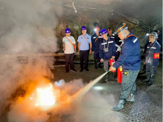 “報告,因電焊電火花導致身旁帶有柴油的雜物起火,現場火勢較大,難以控制……”6月20日,興國縣應急管理局聯合興國鑫碩礦業有限公司開展井下火災事故應急救援演練。
