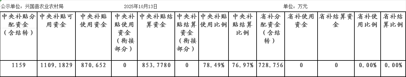 2025年興國縣農機購置補貼實施進度(截至2025年10月13日)