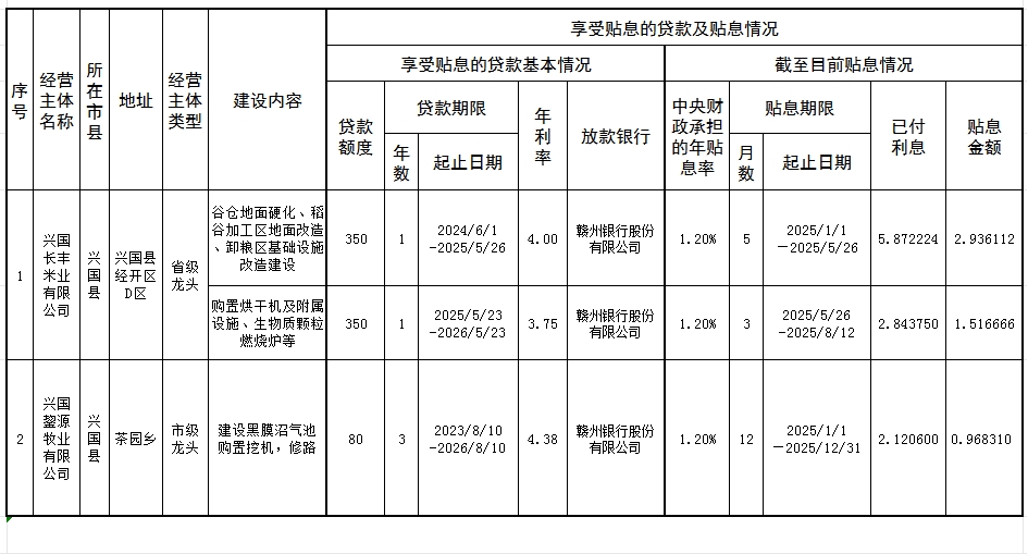 按照農(nóng)業(yè)農(nóng)村部辦公廳、財政部辦公廳《關(guān)于支持糧油等重要農(nóng)產(chǎn)品產(chǎn)能提升有關(guān)政策實(shí)施工作通知》(農(nóng)辦計財〔2023〕20號)和省農(nóng)業(yè)農(nóng)村廳、省財政廳《關(guān)于印發(fā)江西省現(xiàn)代設(shè)施農(nóng)業(yè)建設(shè)貸款貼息試點(diǎn)方案的通知》(贛農(nóng)字〔2024〕19號)、《關(guān)于加強(qiáng)現(xiàn)代設(shè)施農(nóng)業(yè)建設(shè)貸款貼息試點(diǎn)工作的通知》(贛農(nóng)字(2025]35號)及市農(nóng)業(yè)農(nóng)村局、市財政局《關(guān)于印發(fā)贛州市現(xiàn)代設(shè)施農(nóng)業(yè)建設(shè)貸款貼息試點(diǎn)方案的通知》(贛市農(nóng)字〔2024〕57號)要求,我局認(rèn)真組織了公開申報工作,經(jīng)主體申請、鄉(xiāng)鎮(zhèn)推薦、農(nóng)業(yè)農(nóng)村部門審核,現(xiàn)將符合申報本項(xiàng)政策的經(jīng)營主體申報貼息情況公示如下,如有異議請在公示期內(nèi)實(shí)名反饋至縣農(nóng)業(yè)農(nóng)村局(未實(shí)名反饋的不予回應(yīng))。
