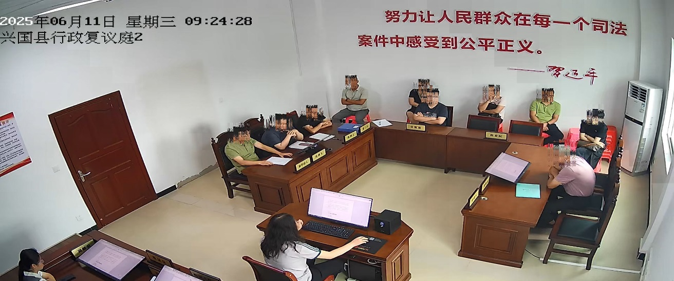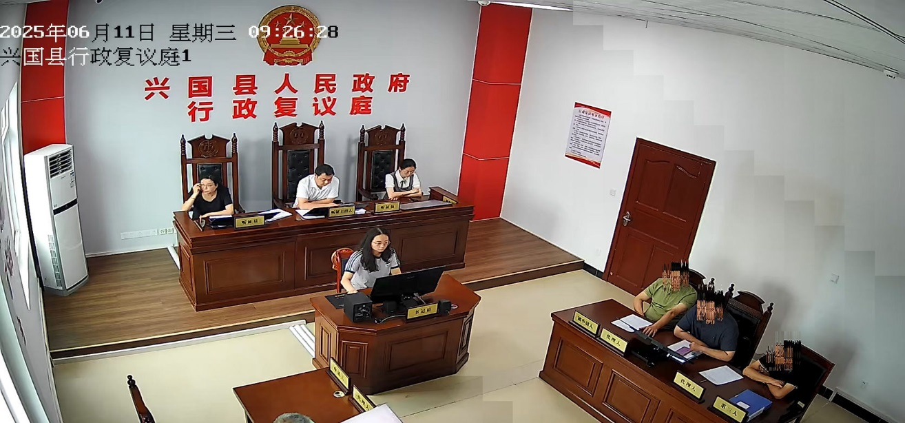 2025年6月11日上午,該兩行政復議案如期舉行聽證,縣司法局取得法律職業資格的3人擔當本兩案的聽證員,主導舉證質證、調查詢問、陳述辯論等不同環節活動,當事人、行政機關負責人、委托代理人等參加人員到場參加,縣科工局等4個單位受邀派員到場參加案件旁聽,縣應急局和興國縣某公司另有人員到場參加旁聽。