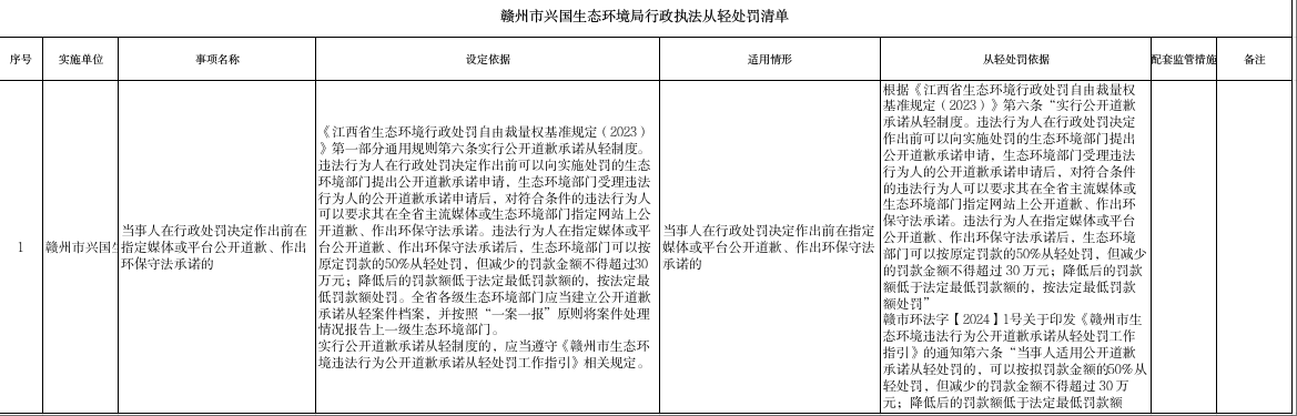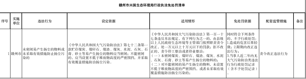 贛州市興國生態環境局行政執法四張清單