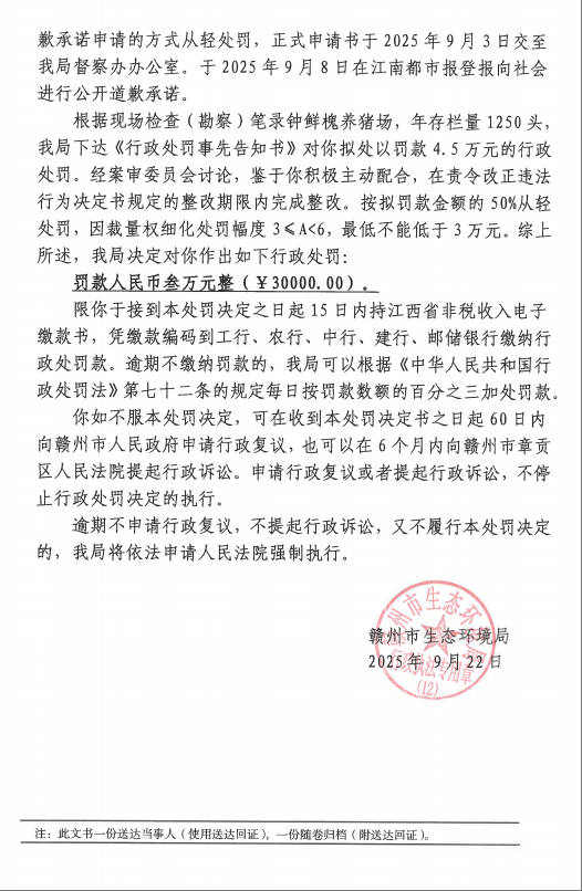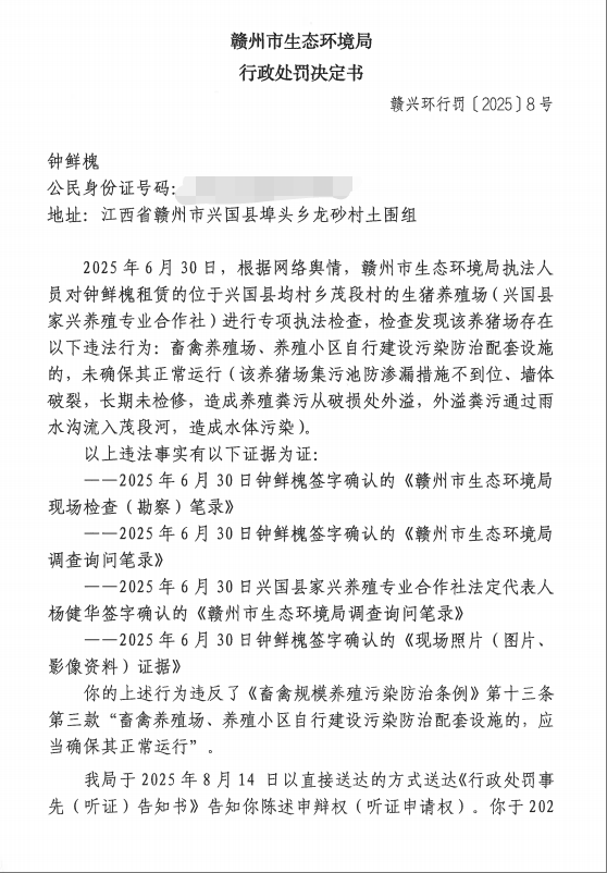 鐘鮮槐行政處罰決定書(贛興環行罰【2025】8號】)信息公開