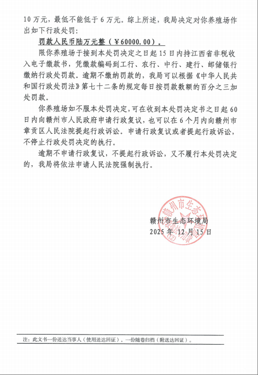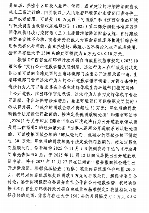 興國縣隆浩養殖場行政處罰決定書公示(贛興環行罰〔2025〕17號)