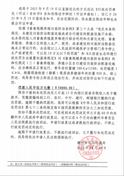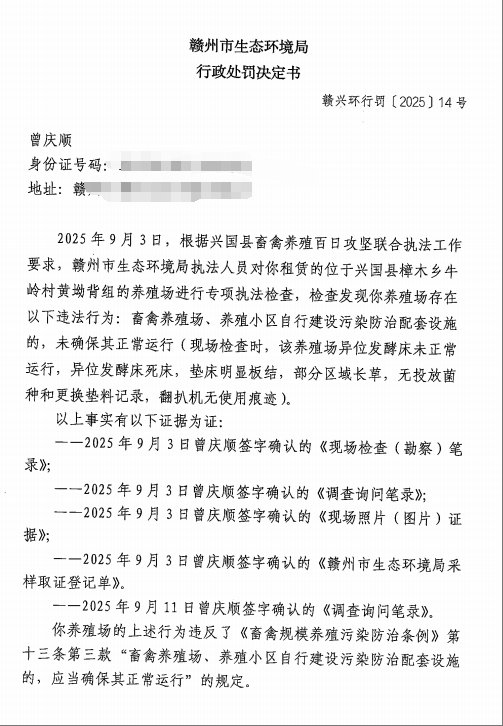 曾慶順行政處罰決定書公示(贛興環行罰【2025】14號)