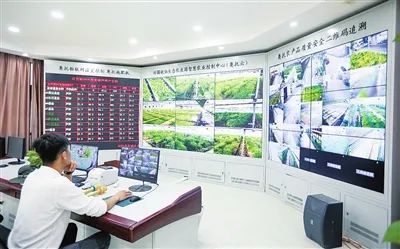 在桃仙生態農業園內,工作人員通過控制中心大屏實時檢測大棚內的環境狀態