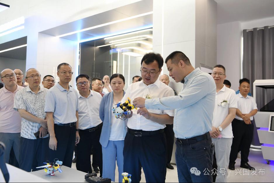 儀式上,鐘永介紹了“興國縣人工智能與機器人綜合建設項目”的整體情況。與會領導與嘉賓共同觸摸啟動球,啟動人工智能教育項目,并為“興國縣人工智能教育實踐基地”揭牌。