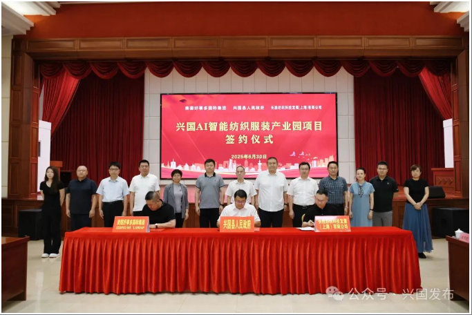 6月30日,興國AI智能紡織服裝產業園項目簽約儀式在興國賓館會堂舉行。