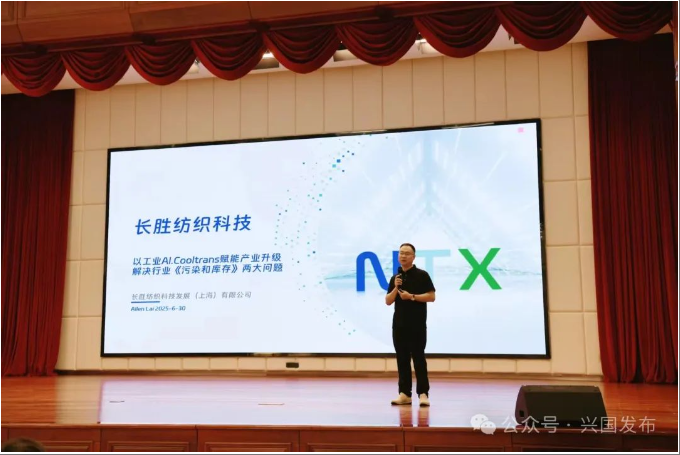 長勝紡織科技發展(上海)有限公司董事長特別助理鄭德裕出席并介紹長勝紡織科技發展(上海)有限公司概況以及冷轉移印花等高新技術。