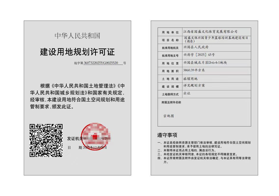 (國盛文體興國青少年藍球培訓基地建設項目酒店)建設用地規劃許可批后公布