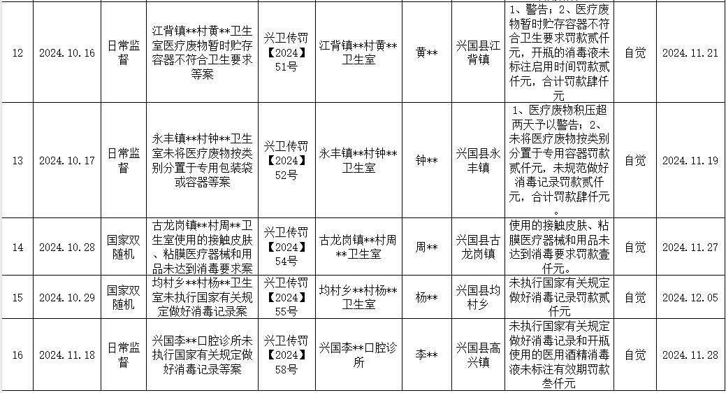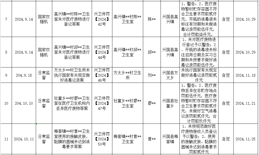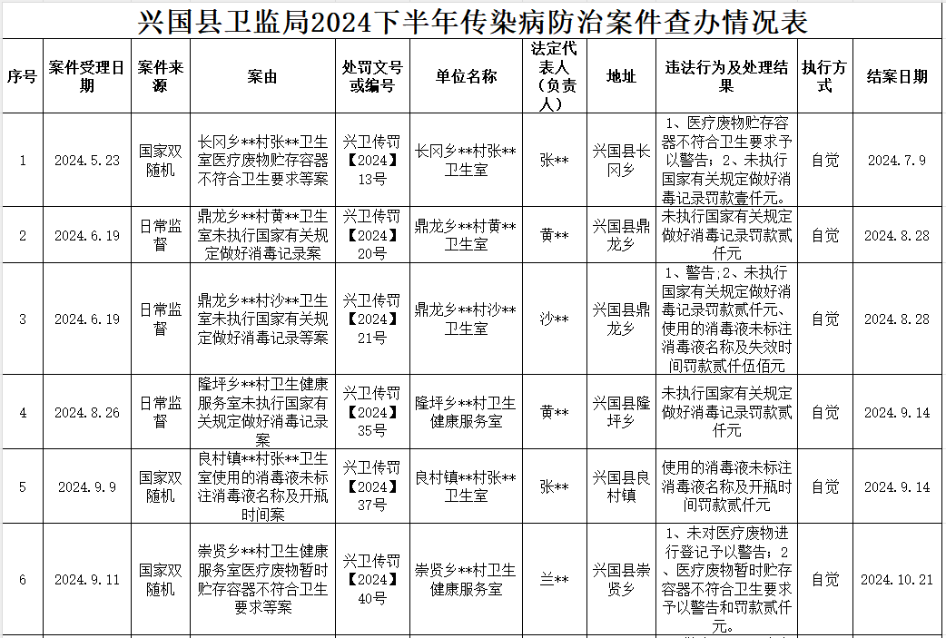 興國縣衛監局2024年下半年傳染病防治案件查辦情況通報