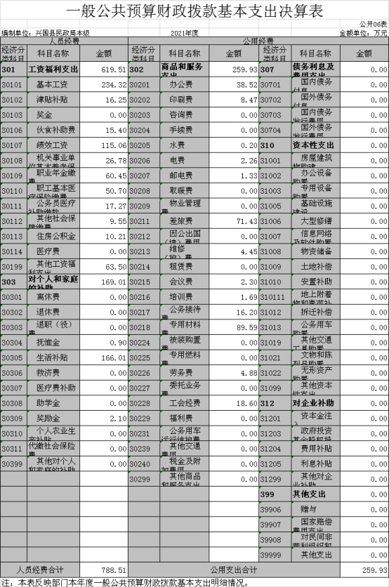 六、一般公共預(yù)算財(cái)政撥款基本支出決算表
