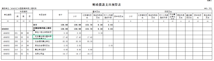 按支出功能分類科目劃分:社會保障和就業支出131.89萬元,較上年預算安排增26.89萬元,占預算總額的86.13%。