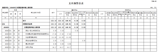 納入本套部門預算匯編范圍的單位共1個,成立于1969年12月,是興國縣編制委員會批準的隸屬興國縣民政局的財政全額撥款的事業單位,2009年12月30日增掛“興國縣精神病醫院”牌子,主要承擔收容及救治精神病患者的工作。主管部門是興國縣民政局。本單位人員編制12人。