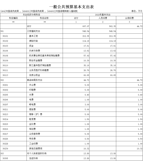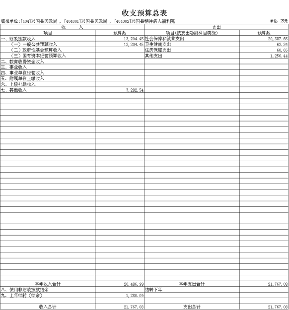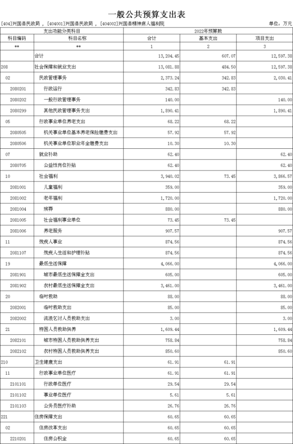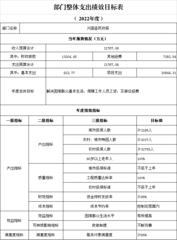 第三部分 興國縣民政部門2022年部門或單位預(yù)算表