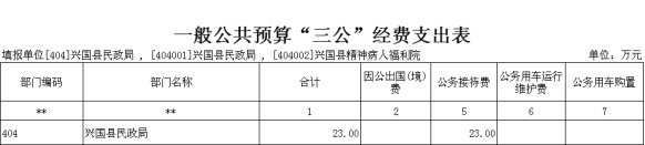 2022年興國縣民政部門“三公”經(jīng)費(fèi)一般公共預(yù)算安排23萬元。其中: