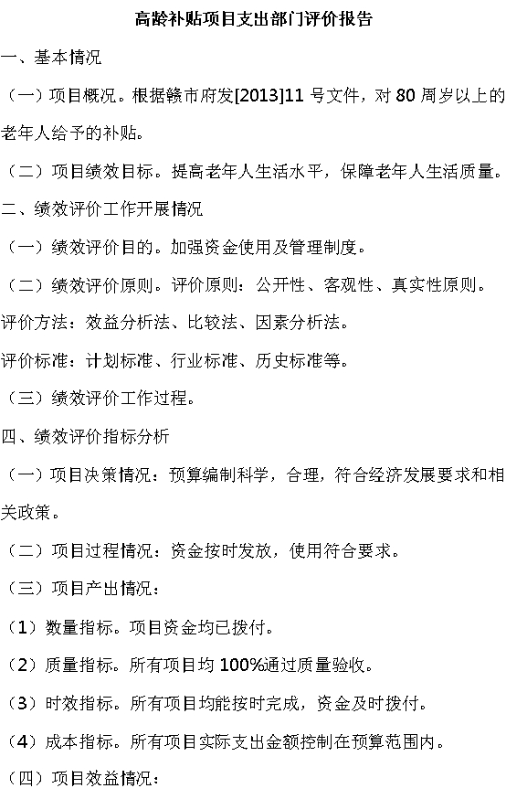 組織對“農村低保”、“高齡補貼”、“殘疾人兩項補貼”等3個項目開展了部門評價,涉及一般公共預算支出???5568萬元,政府性基金預算支出0萬元,國有資本預算支出 0 ?萬元。從評價情況來看,項目取得了良好的社會效益。提升了民政公共服務建設水平和服務水平,但農村低保配套資金執(zhí)行率偏低,原因是上級有資金下?lián)堋?/font>