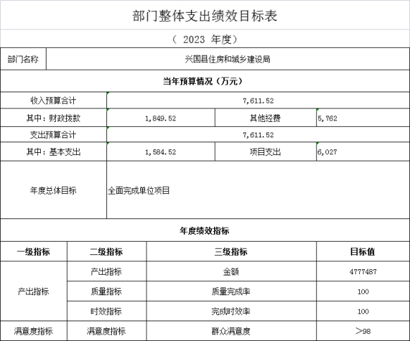 興國縣住房和城鄉建設局2023年部門預算