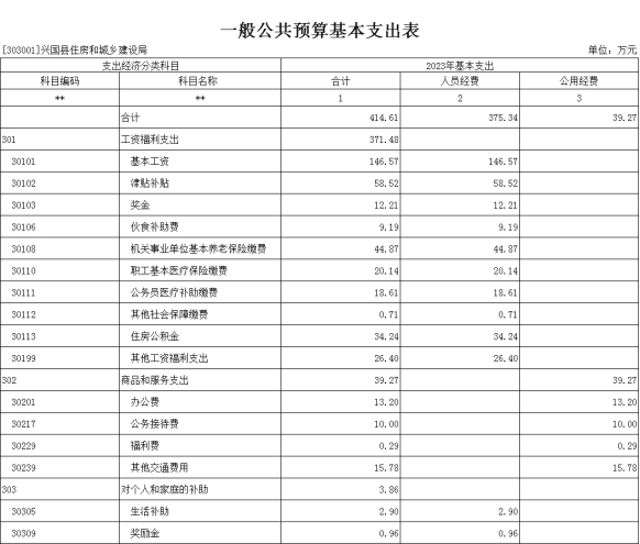 第三部分 興國(guó)縣住房和城鄉(xiāng)建設(shè)局2023年單位預(yù)算表