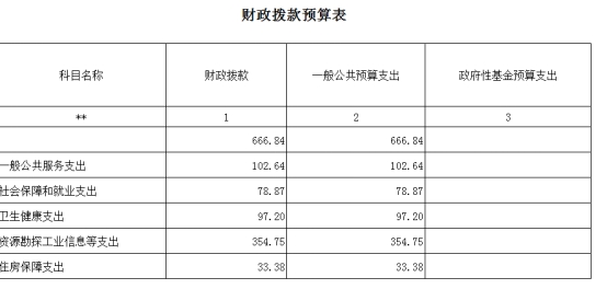 按支出功能科目劃分:一般公共服務支出102.64萬元,較上年預算安排減少4.69萬元;教育支出0萬元,較上年預算安排增加(減少)0萬元;科學技術支出0萬元,較上年預算安排增加(減少)0萬元;社會保障和就業支出78.87萬元,較上年預算安排增加9.02萬元;衛生健康支出97.2萬元,較上年預算安排增加3.84萬元;資源勘探工業信息等支出354.75萬元,較上年預算安排增加7.41萬元,農林水支出0萬元,較上年預算安排增加(減少)0萬元;住房保障支出33.38萬元,較上年預算安排減少1.08萬元。
