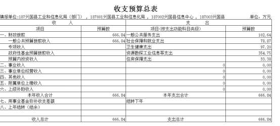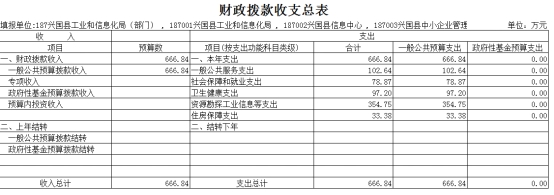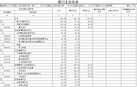 2021年興國縣工業和信息化局財政撥款支出預算總額為財政撥款支出預算總額666.84萬元,較上年預算安排增加14.5萬元,原因主要是公用經費由2020年的人均5500元增至2021年的人均6000元,每人增加500元 。