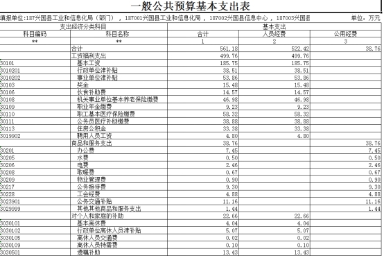 第二部分 興國縣工業和信息化局 2021年部門預算表