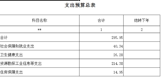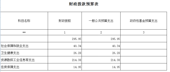 按支出功能科目劃分:一般公共服務支出295.95萬元,較上年預算安排增加12.58萬元;教育支出0萬元,較上年預算安排增加(減少)0萬元;科學技術支出0萬元,較上年預算安排增加(減少)0萬元;社會保障和就業支出40.34萬元,較上年預算安排增加18.19萬元;衛生健康支出26.28萬元,較上年預算安排增加1.44萬元;資源勘探工業信息等支出214.38萬元,較上年預算安排減少6.29萬元,農林水支出0萬元,較上年預算安排增加(減少)0萬元;住房保障支出14.95萬元,較上年預算安排減少0.76萬元。