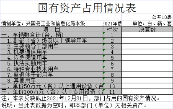 截止2021年12月31日,本部門(單位)國有資產(chǎn)占用情況見公開10表《國有資產(chǎn)占用情況表》。其中車輛中的其他用車主要是沒有發(fā)生。