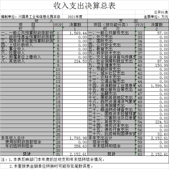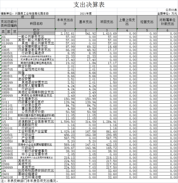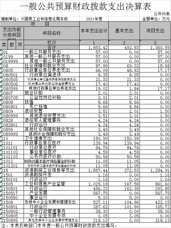 納入本套部門決算匯編范圍的單位共1個,包括:興國縣工業(yè)和信息化局本級。