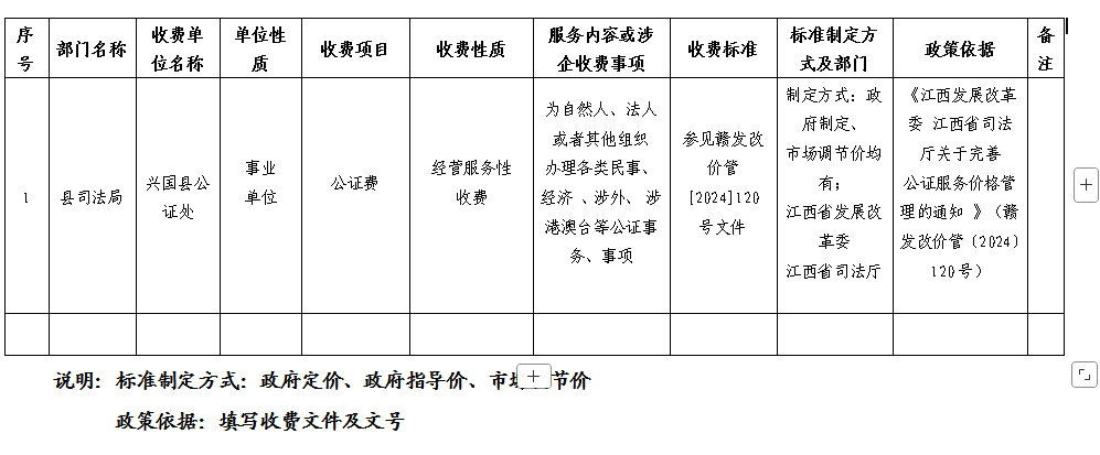 興國縣司法局及下屬單位綜合性涉企收費目錄清單
