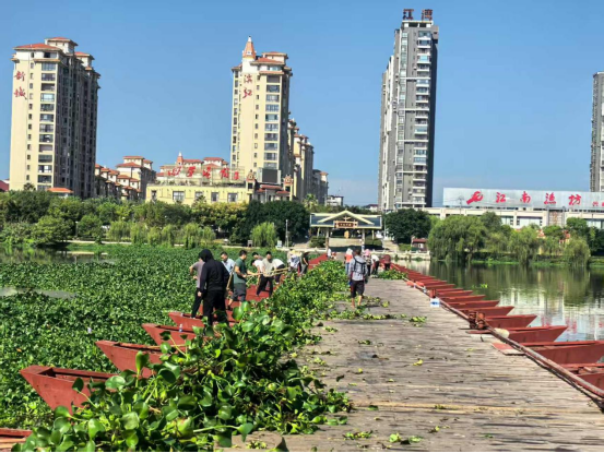 當前正值夏季,氣溫升高,河道內水葫蘆進入生長爆發期。這些瘋長的水生植物不僅大面積覆蓋水面,影響水體復氧,破壞水域景觀,更可能導致河道堵塞、影響排澇防洪功能,對水生態平衡構成威脅。面對這一“綠色污染”,我局迅速部署,將清理水葫蘆作為當前一項緊迫任務,并特別強調要發揮年輕干部的生力軍和突擊隊作用。