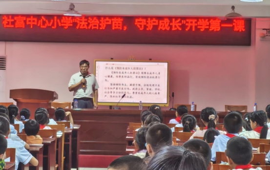 為筑牢校園法治安全防線,9月8日上午,社富司法所聯合鄉綜治中心、派出所走進鄉中心小學,開展“2025年秋季開學法治第一課”主題活動。司法所所長、學校法治副校長楊志華,派出所副所長、法治輔導員任國新共同授課,為全體學生帶來一堂沉浸式法治教育課。