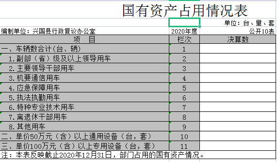 截止2020年12月31日,本部門(單位)國有資產(chǎn)占用情況見公開10表《國有資產(chǎn)占用情況表》。
