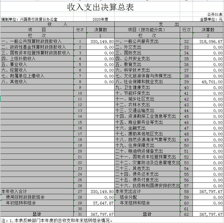 興國縣行政復(fù)議辦公室2020年度部門決算