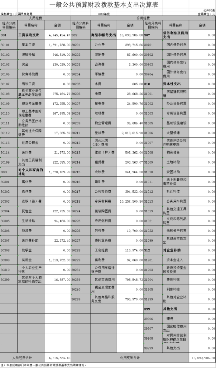興國縣商務局 2018 年度部門決算