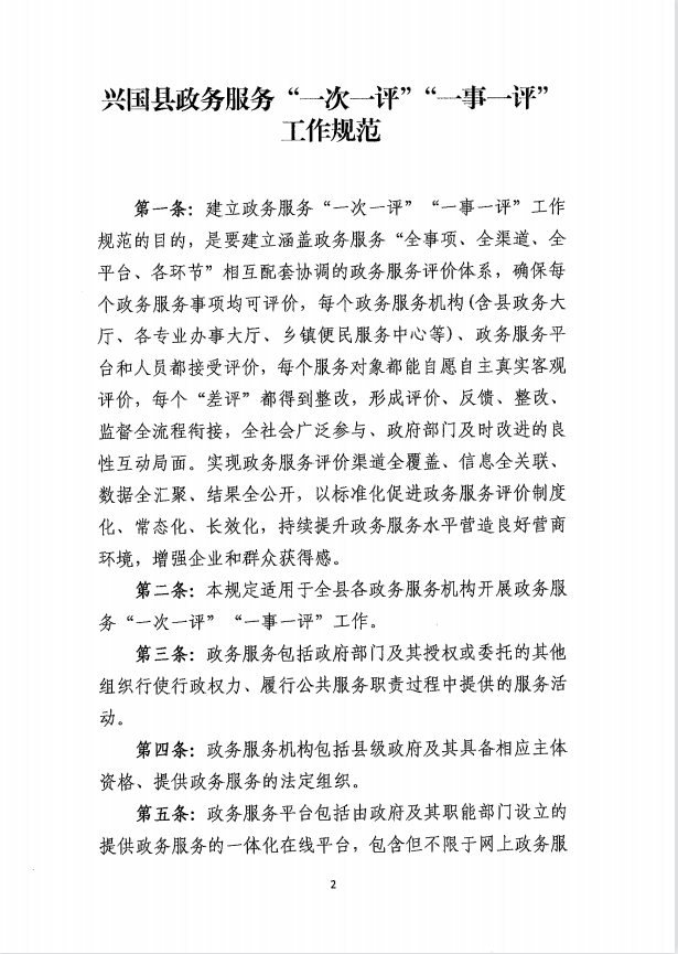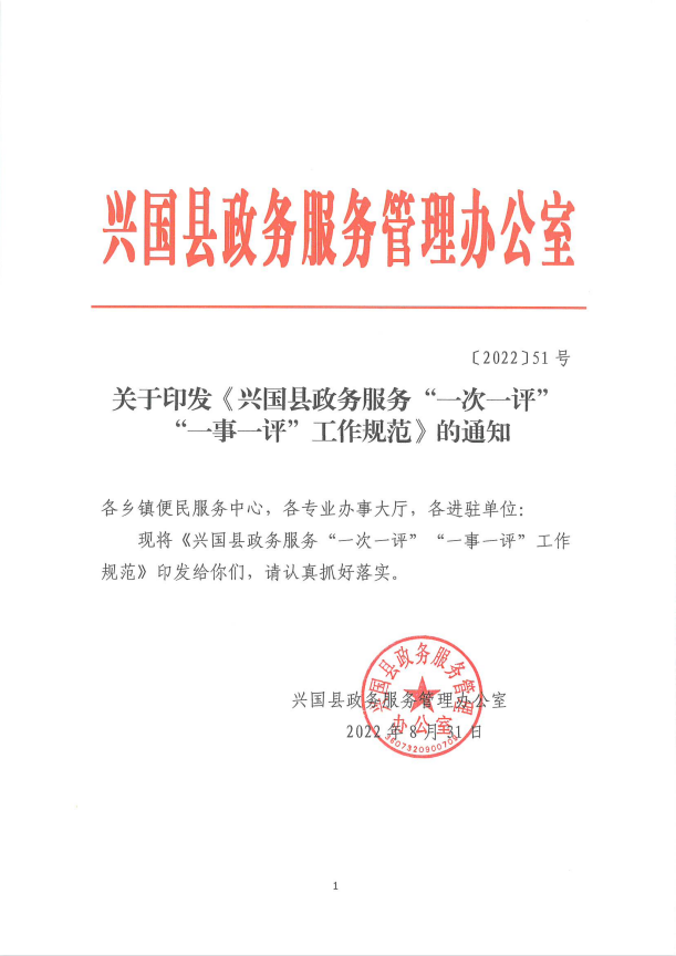 【部門文件】關(guān)于印發(fā)《興國(guó)縣政務(wù)服務(wù)“一次一評(píng)”“一事一評(píng)”工作規(guī)范》的通知