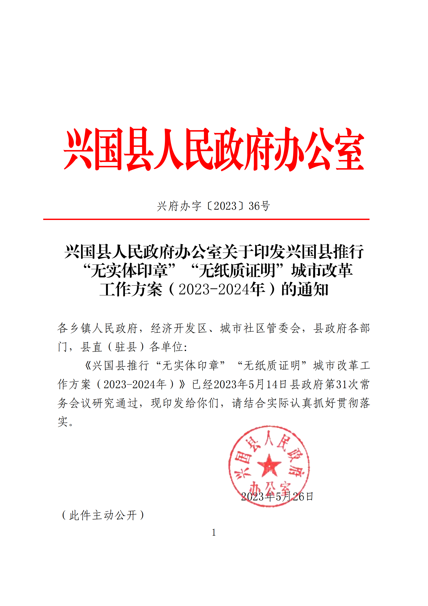 附件6.縣司法局關于印發興國縣推行“無實體印章”“無紙質證明”城市改革工作方案(2023-2024年)的通知的合法性審查意見